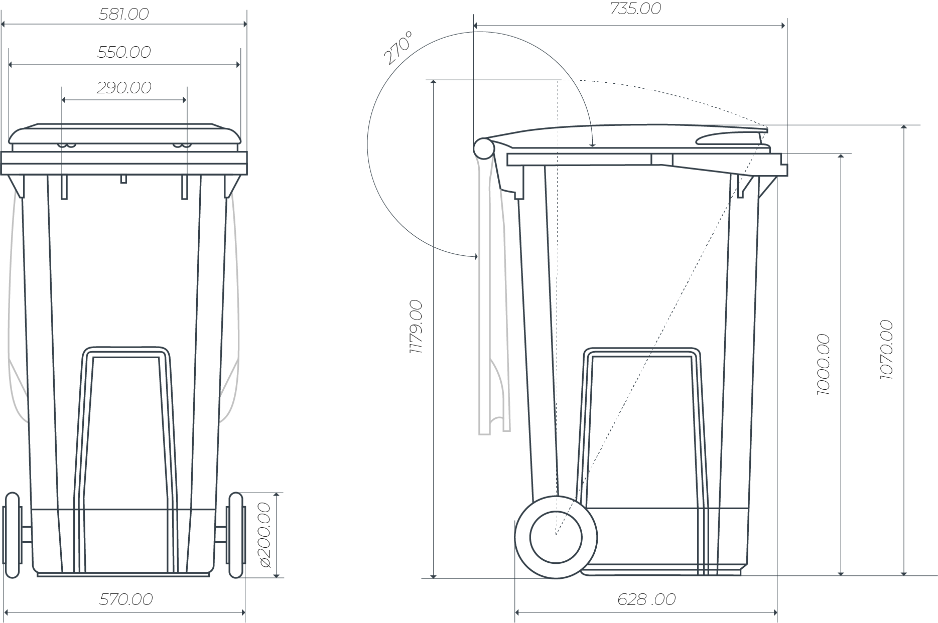 Predisposta sul corpo agevola la movimentazione del cassonetto.