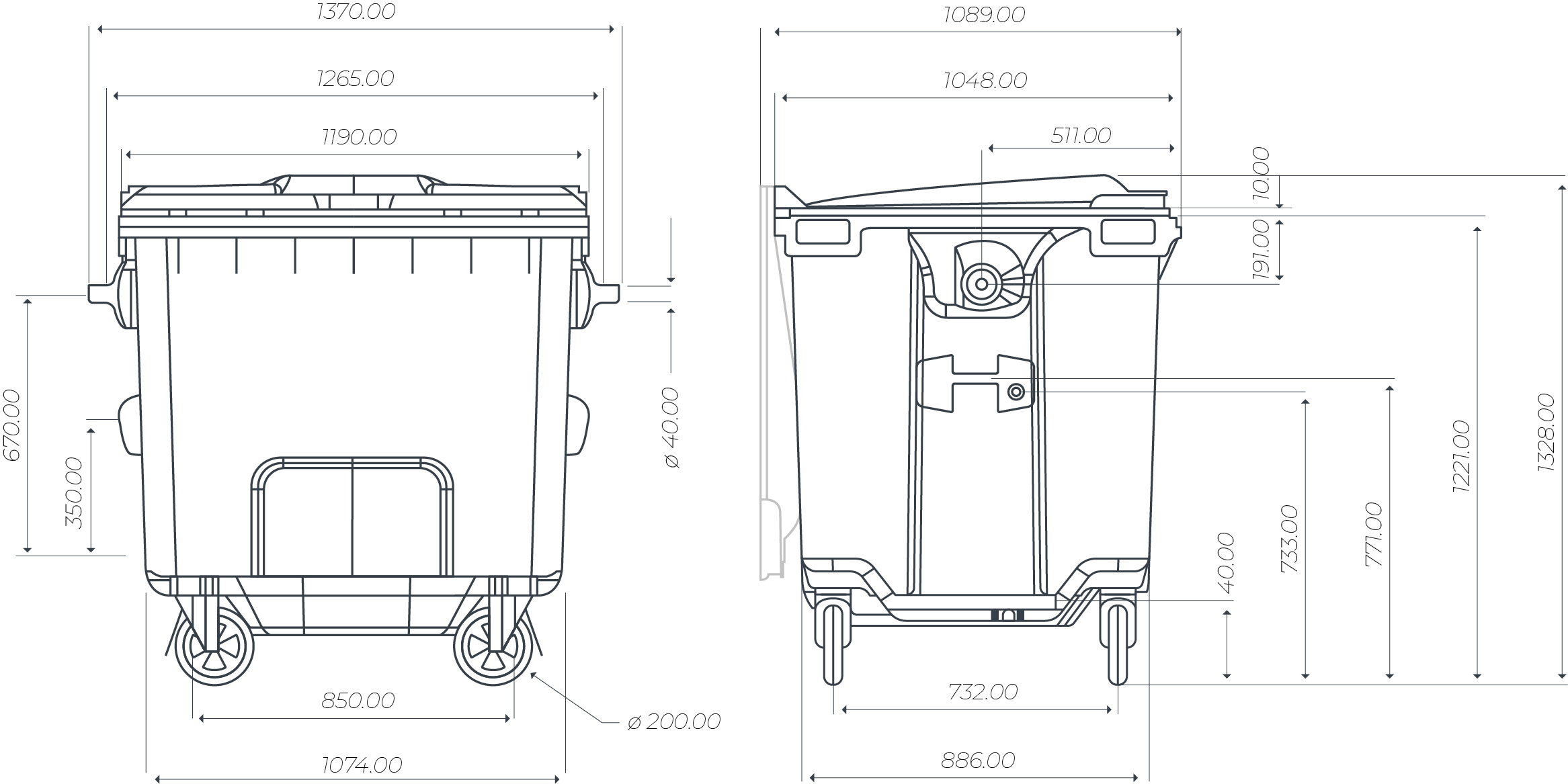 Freno ruote per evitare lo spostamento involontario del cassonetto.