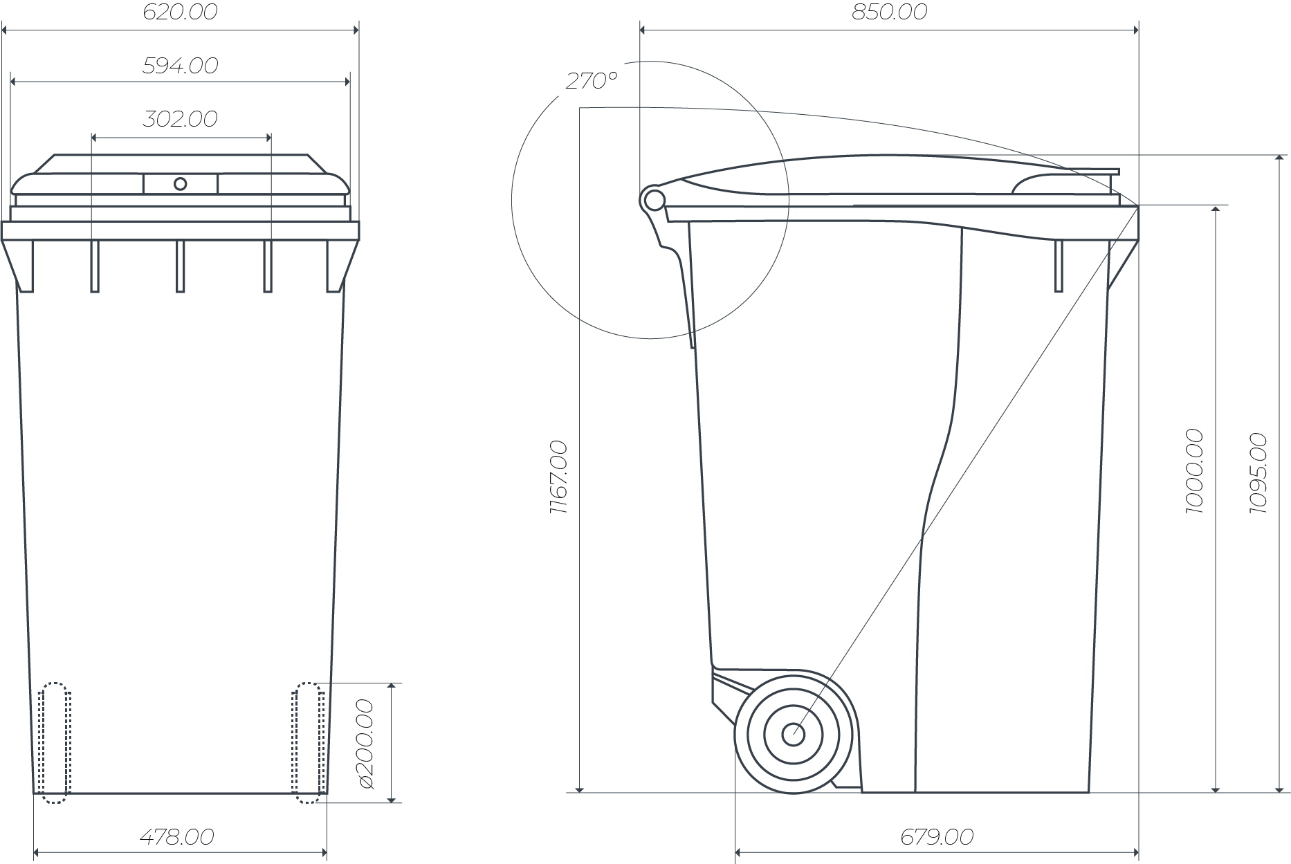 Posto sul retro del cassonetto, ne agevola la movimentazione volontaria e lo spostamento.